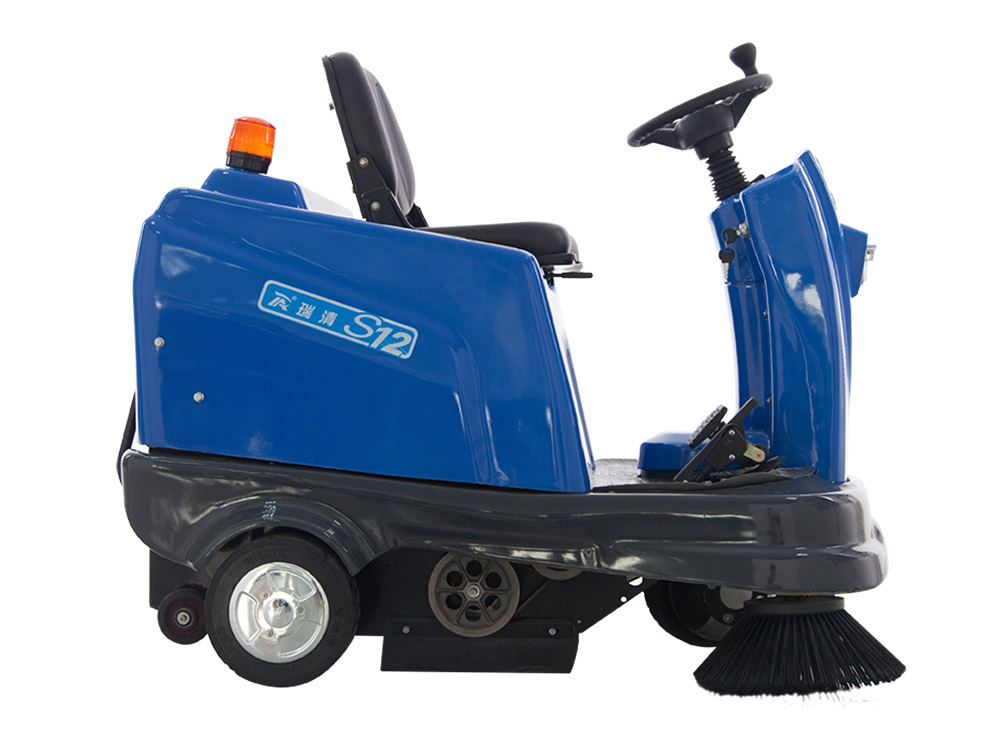 Ruiqing S12 driving sweeper is suitable for cleaning and cleaning of indoor and outdoor places such as workshop, warehouse, factory area, school and community. The side brush sweeps the garbage to the middle, and the lower roller brush directly sweeps the garbage into the garbage bin. The built-in dust collection and filtration device is completed in one time to clean, collect and control the dust, which is suitable for use in the place of 2000-20000 m2.