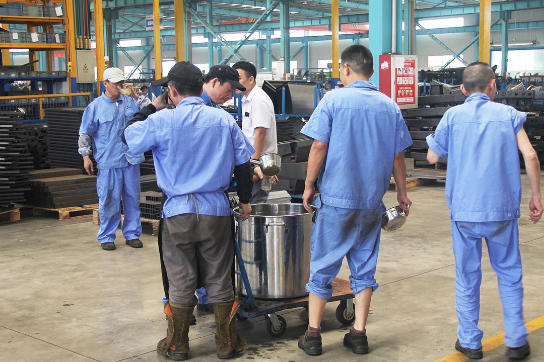 為表達(dá)對員工的關(guān)心與愛護(hù),公司即日起開展本年度的“夏送清涼”活動,為炎炎夏日依舊堅(jiān)守在工作崗位上的一線工人們送去了清涼解暑的綠豆湯。