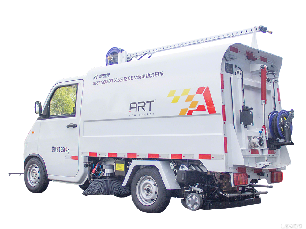 ART5020TXSS12BEV純電動(dòng)洗掃車主要用于主干道、非機(jī)動(dòng)車道、背街小巷等路面的普掃作業(yè),集清掃、高壓沖洗等功能為一體,可快速清掃落葉、石子、沙塵、白色垃圾等,垃圾,自卸傾倒。