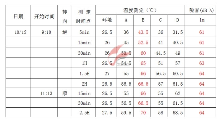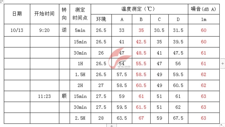 測(cè)試過(guò)程:減速機(jī)類(lèi)型:斜齒(加脂量:25g