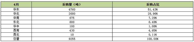 國內潤滑油市場疫情過后需求逐漸恢復,4月車用潤滑油和工業(yè)潤滑油需求出現(xiàn)明顯增加,大中型潤滑油工廠庫存量也逐漸消化完畢,進入補貨周期,使得4月份基礎油市場價格出現(xiàn)大幅上揚,漲幅累計在300-400元/噸左右。隆眾電話調研的下游109家潤滑油工廠的生產情況來看,4月份潤滑油工廠全面復工,用油量達到94170噸,相較于3月份環(huán)比增加18.53%。其中,有81家完成了采購,采購總量達9255噸。采購量大的以華東、華北為主,分別占比51.43%、28.96%。
