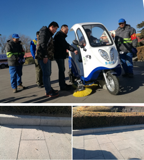 在對天安門地區樹坑之間、欄桿之間距離進行實地測量的基礎上,這兩種車型的寬度設計為1.2米,能較好的滿足天安門地區的作業需要。車型小、操作靈活,就連剛拿到駕照的小編,操作起來也是毫無壓力。